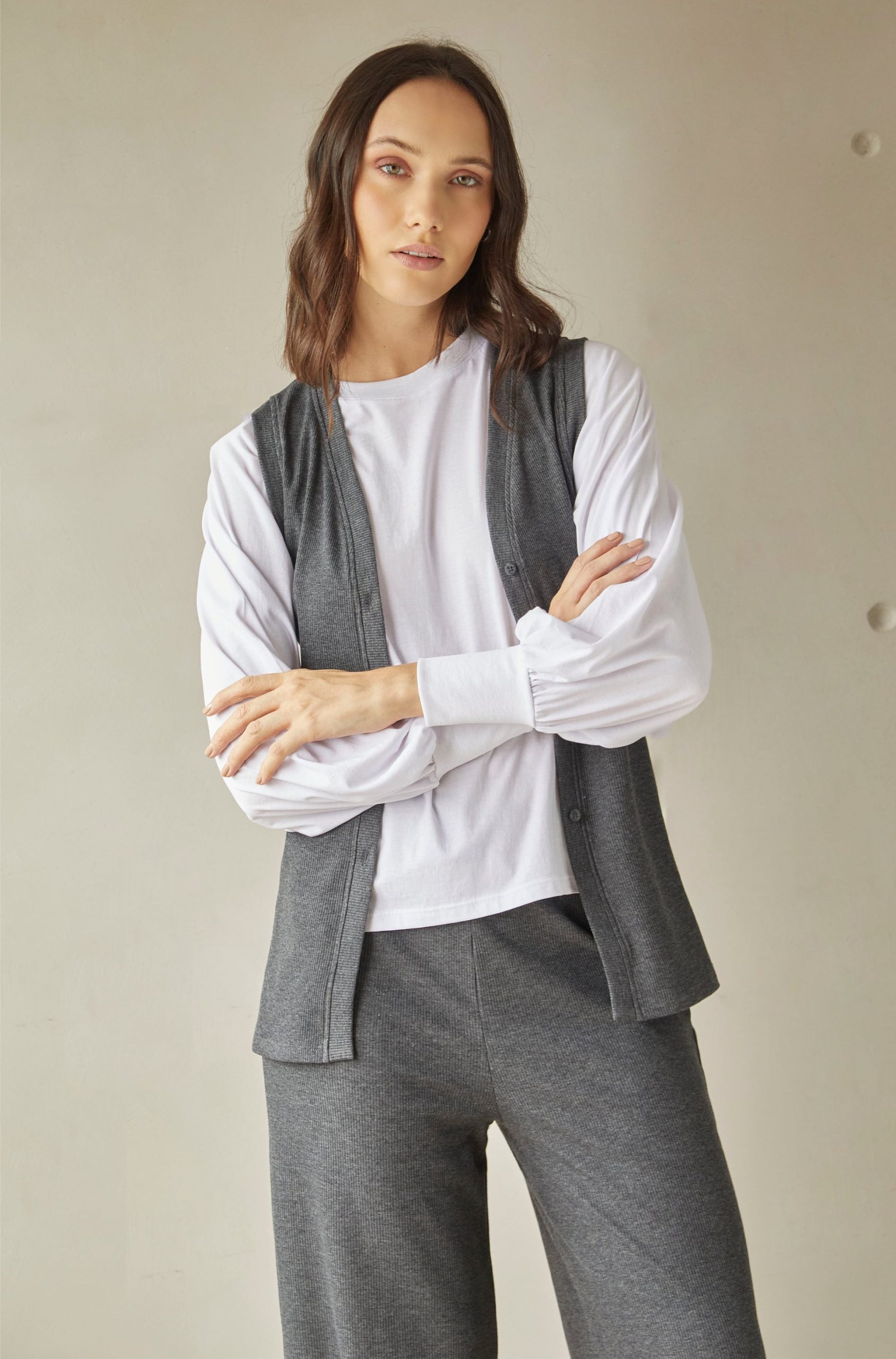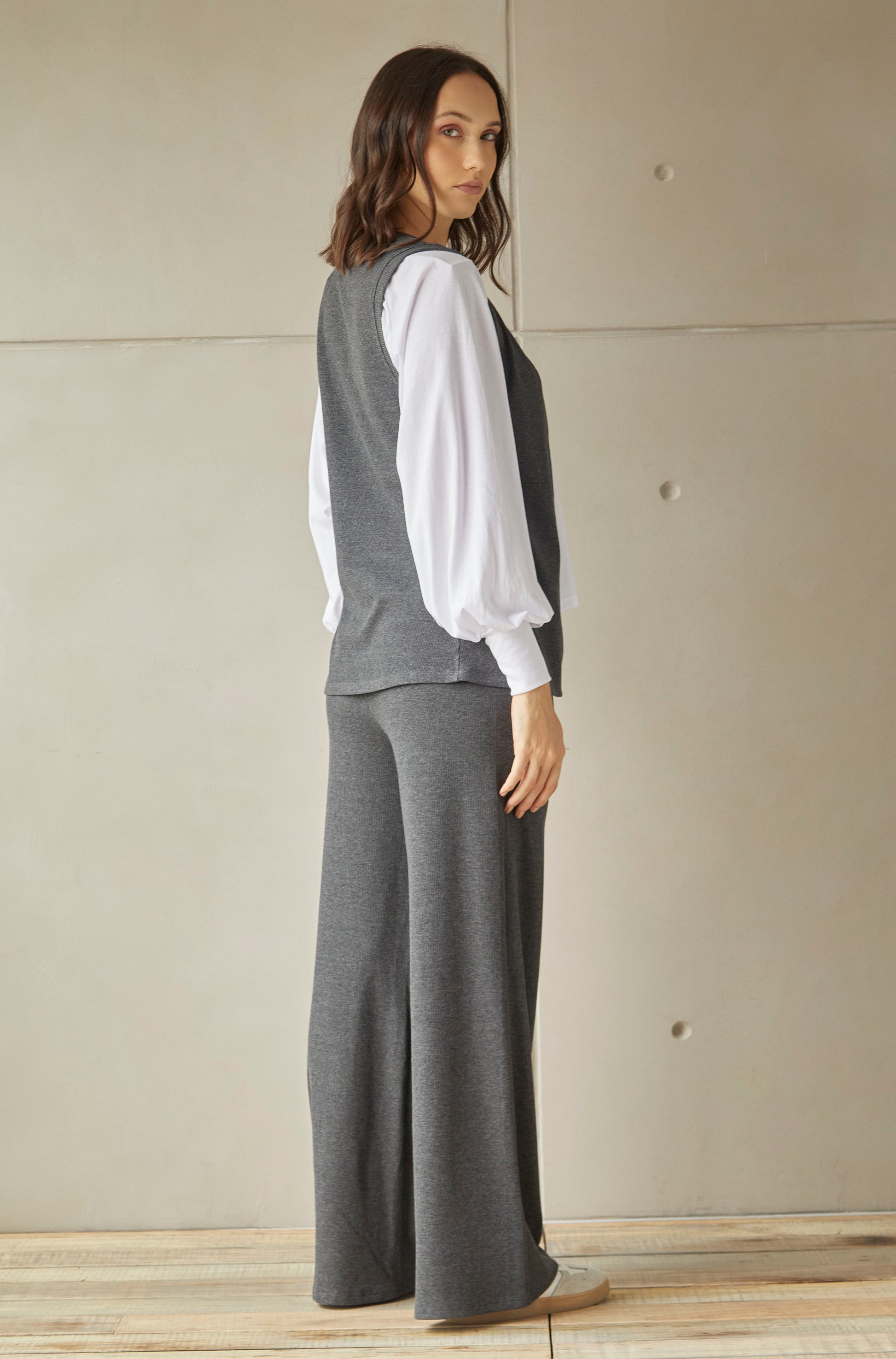 Pantalón palazo con elástico en cintura. Tela: Rib. Composición: 97% Rayón, 3% Spandex. Medidas: